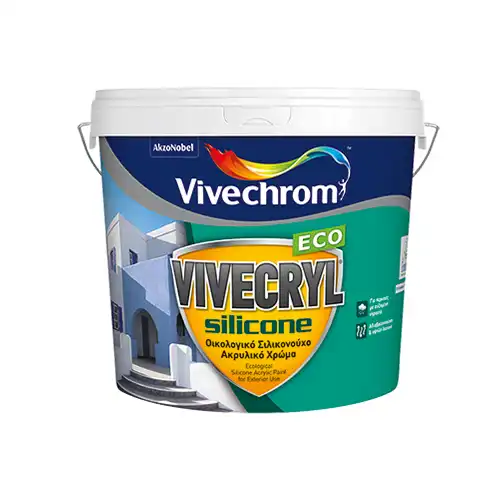 VIVECRYL SILICONE ECO is an acrylic matt paint for exterior use, based on silicon acrylic resins. It is ideal for areas with wet climate and adverse weather conditions (mountainous or close to the sea areas), as it combines water repellence with high water vapour permeability, providing the ability to the water vapour to escape easily.